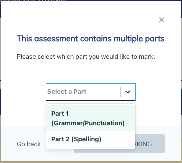 For a multi-part assessment, select "End/Start test" and use the slider to end the specific part that has been sat by students which will send the answers to our Powermark AI assistant.