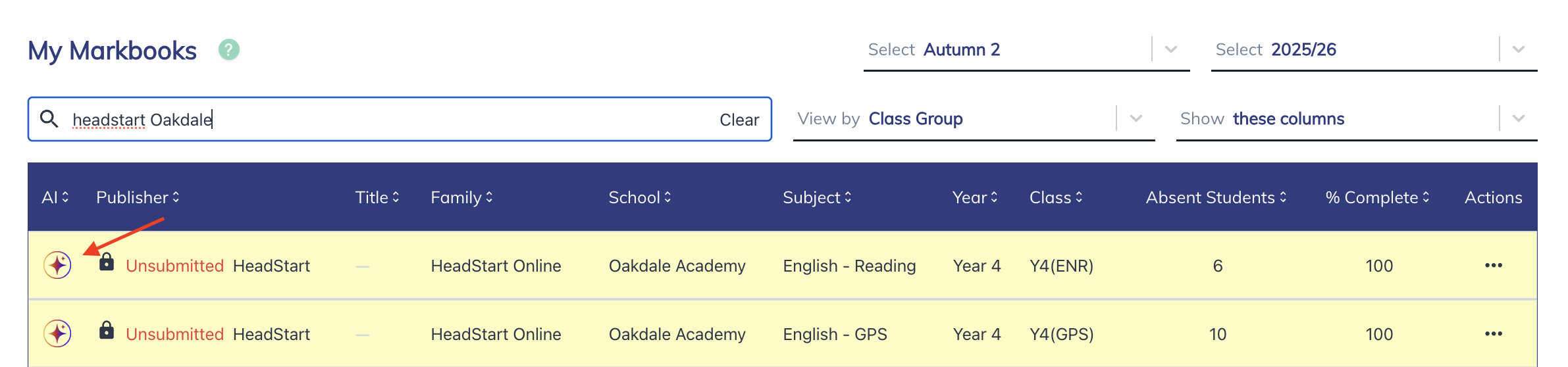 Markbooks will need to be assigned in the Marketplace by a School or MAT Admin. Smartgrade support will also need to tag these markbooks as being available for AI automarking - please contact our at help@smartgrade.co.uk to arrange for this to happen. Once the markbooks have been tagged, you will see a Powermark icon in the AI column on the Markbooks table.